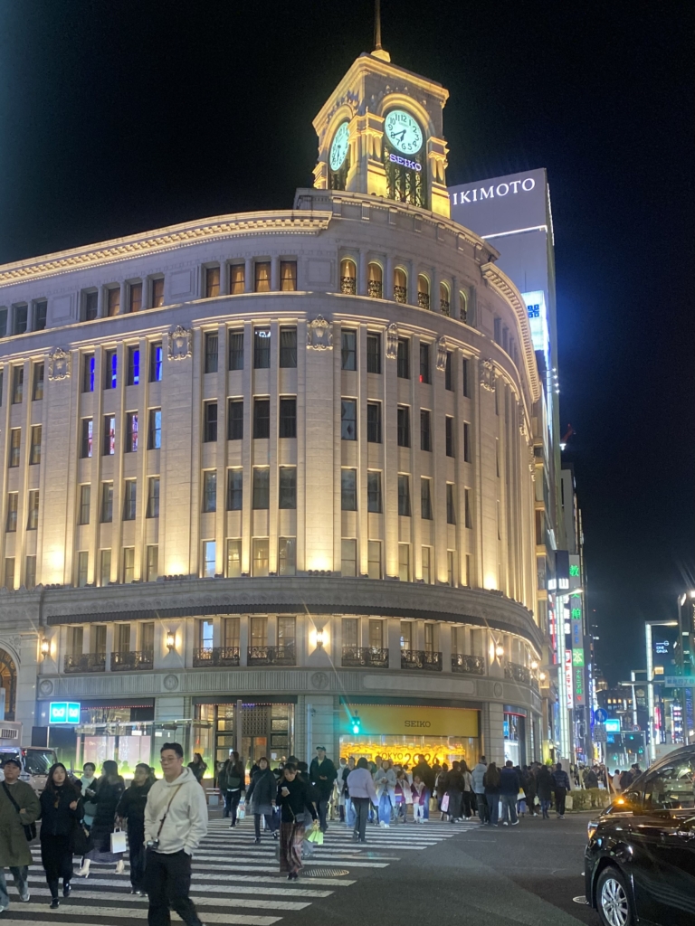 銀座の象徴ともいえる時計塔を戴く和光本店。