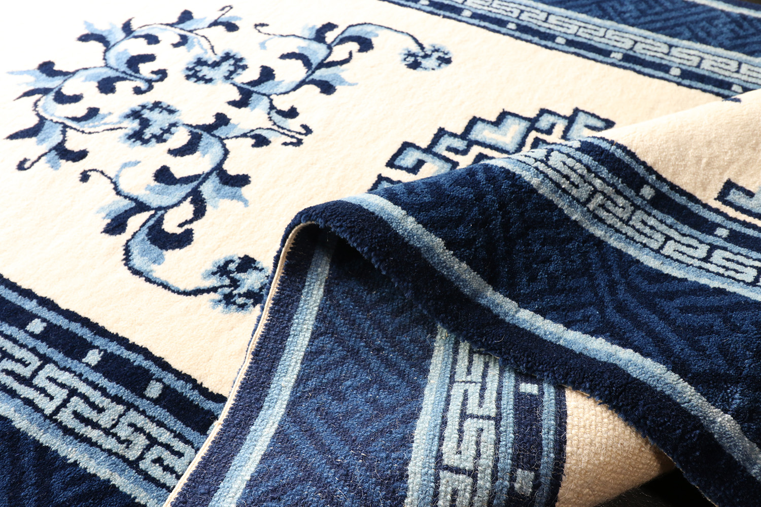 クラシカルで複雑なデザインを Blue & white の配色でキリッと力強くアレンジした1枚です。