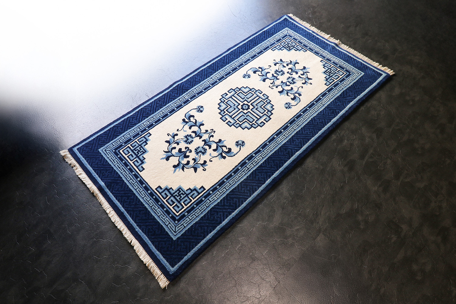 Design no.008(萬字繋文辺牡丹文氈)、 Size 91×183 cm。