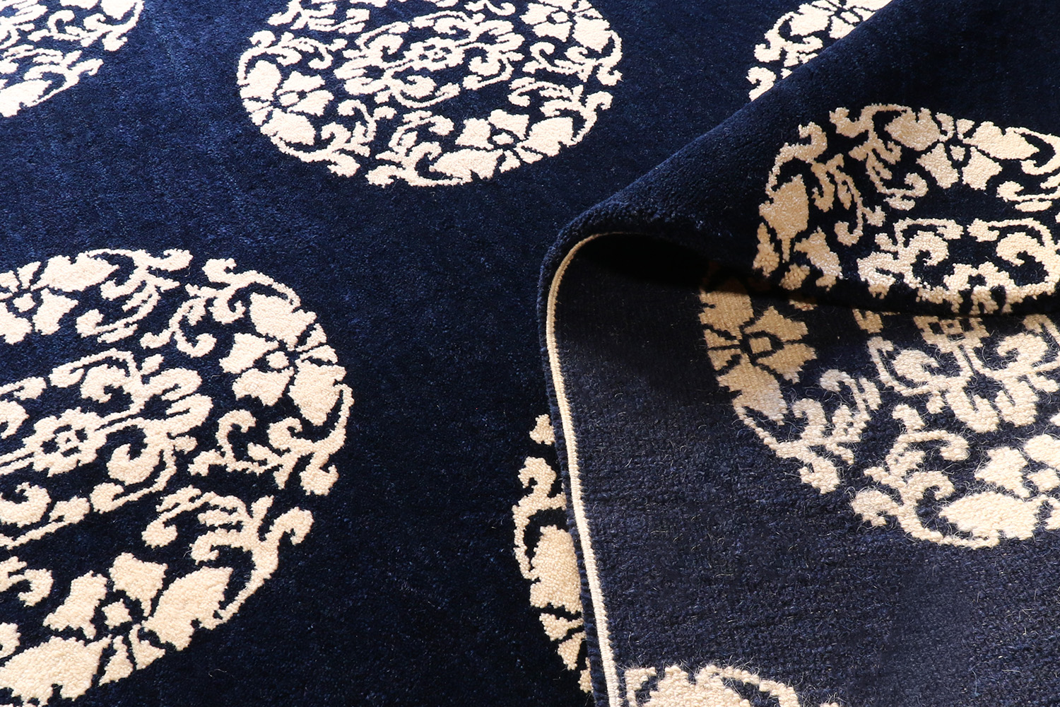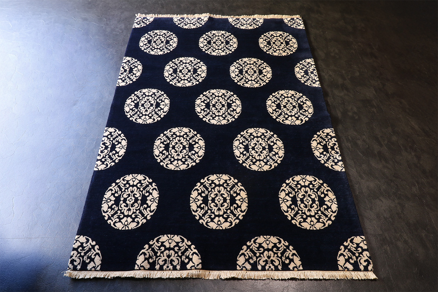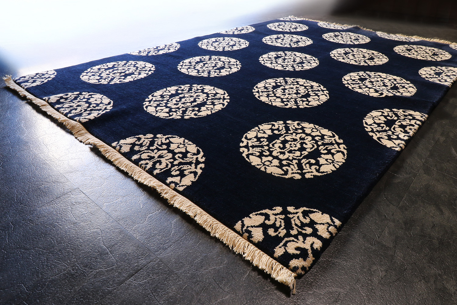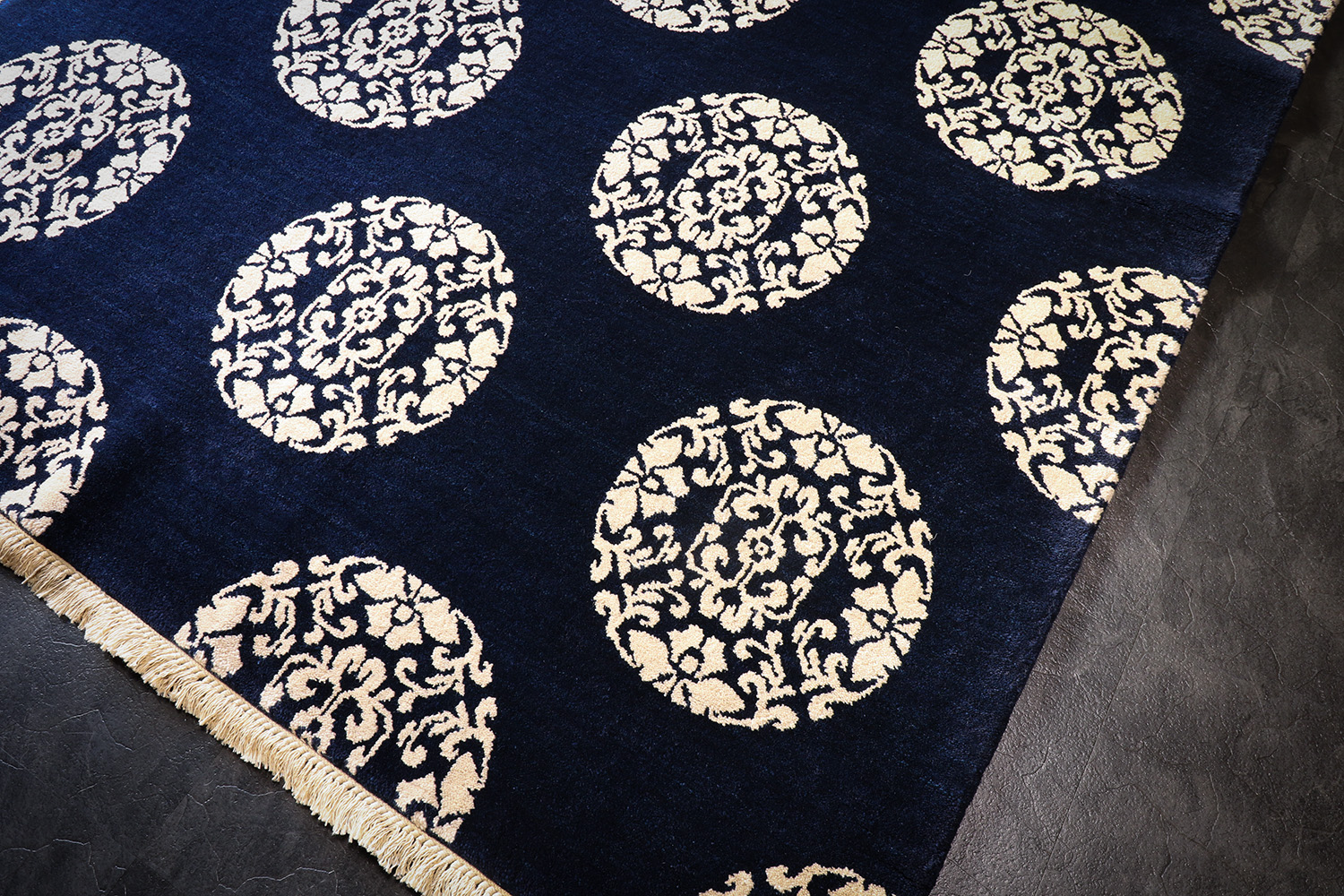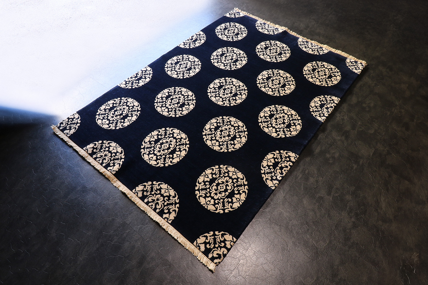 Design No.009A(藍地蓮団花文氈)、size 137×198 cm 。
