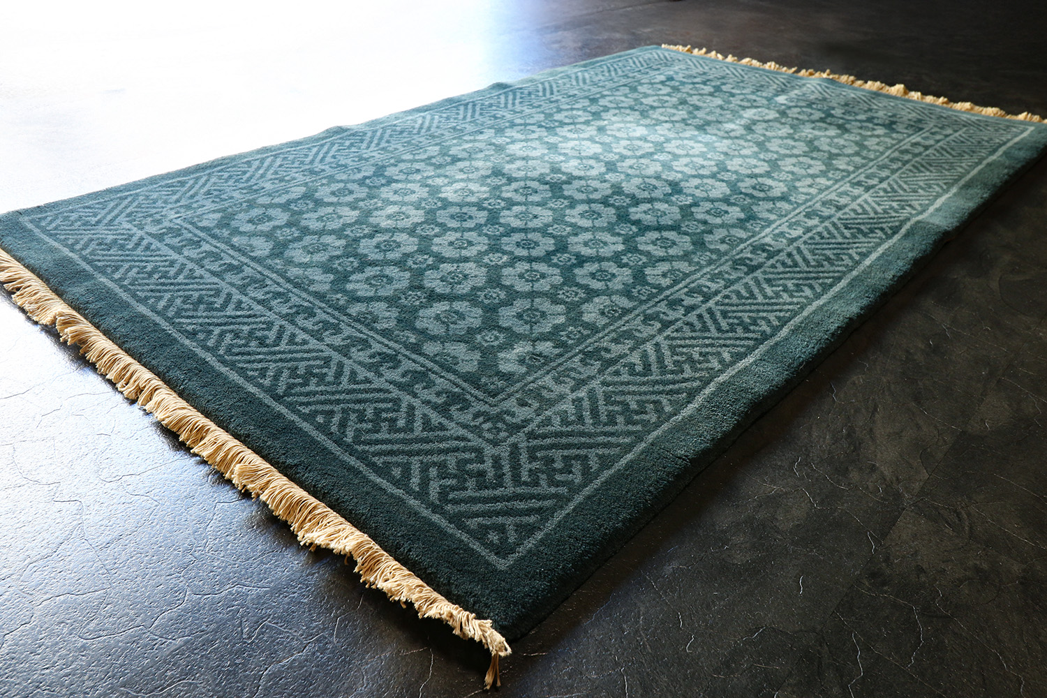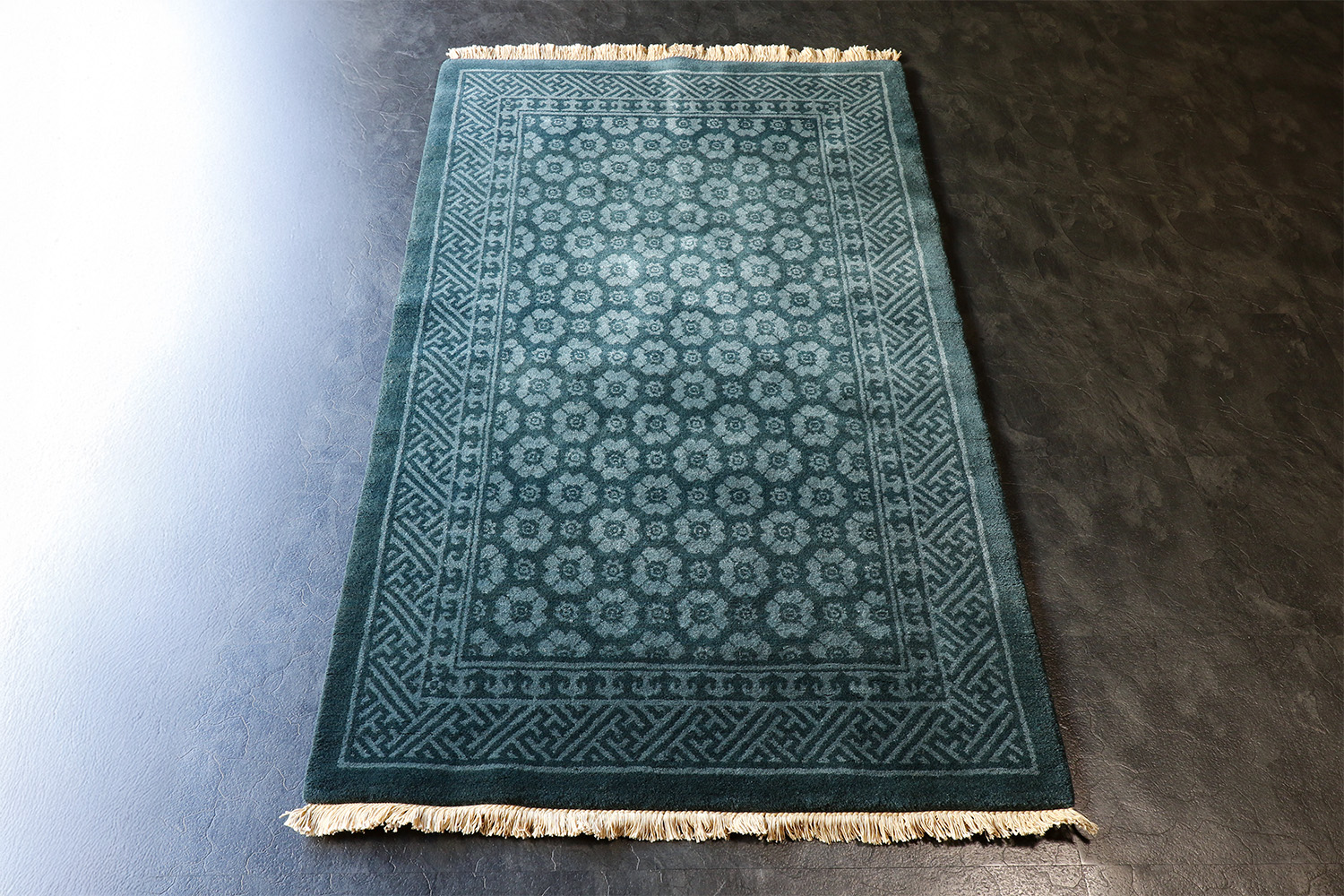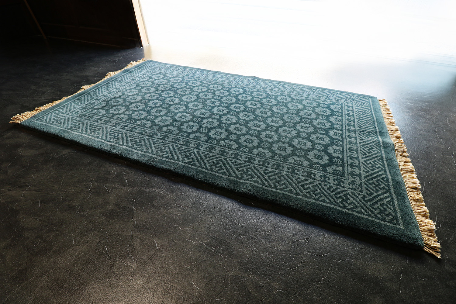 マリングリーン(青緑)のモノトーンで織り上げた、