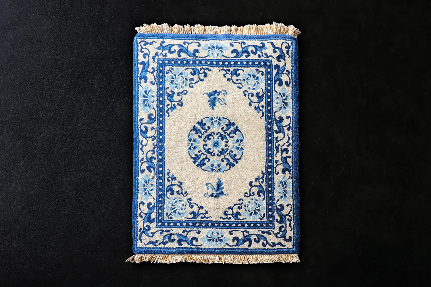 Design no.069(蝶恋花文白三藍氈)、 Size 55×75 cm。