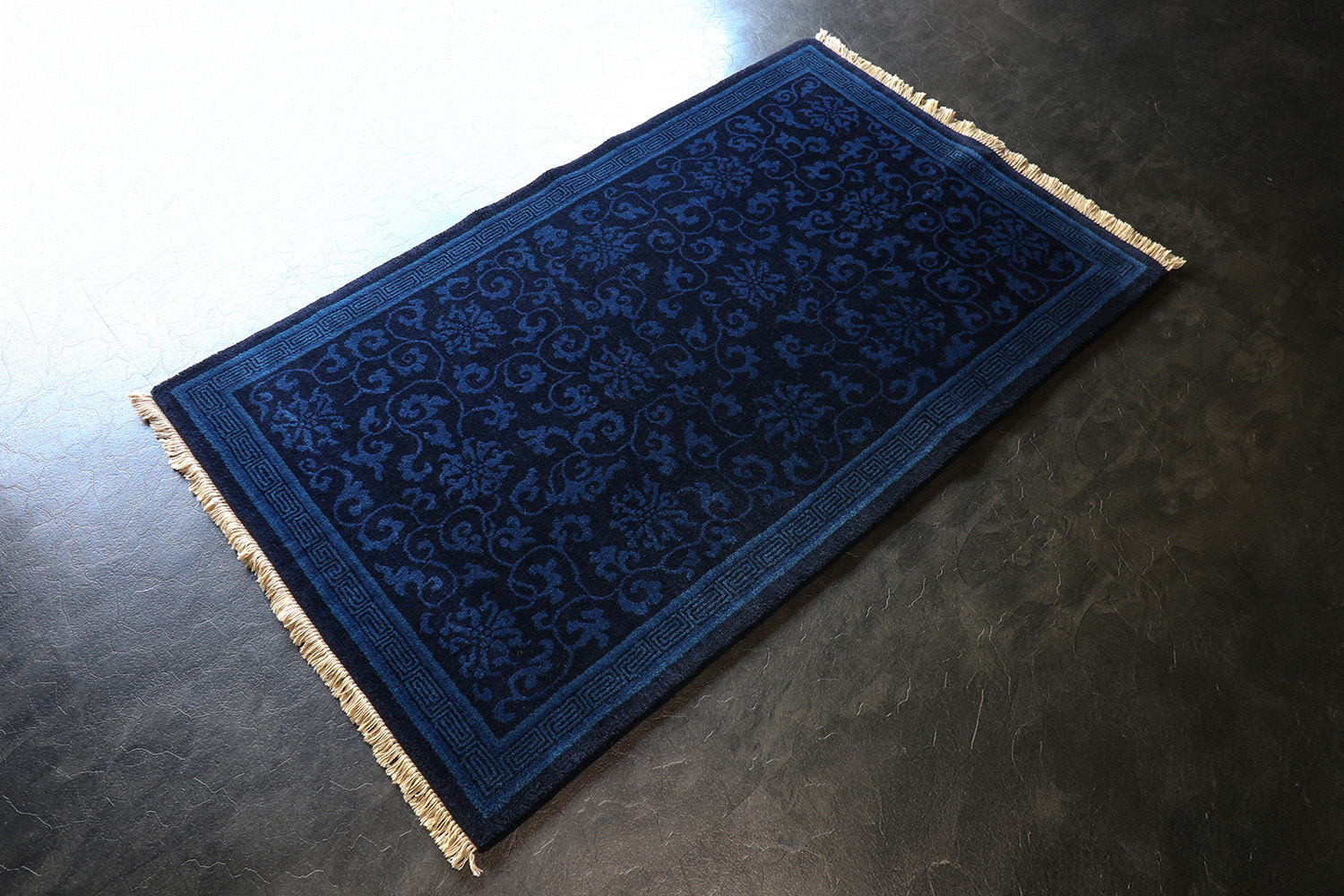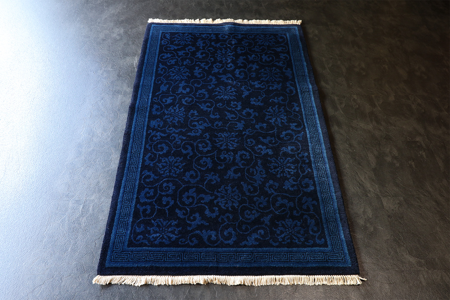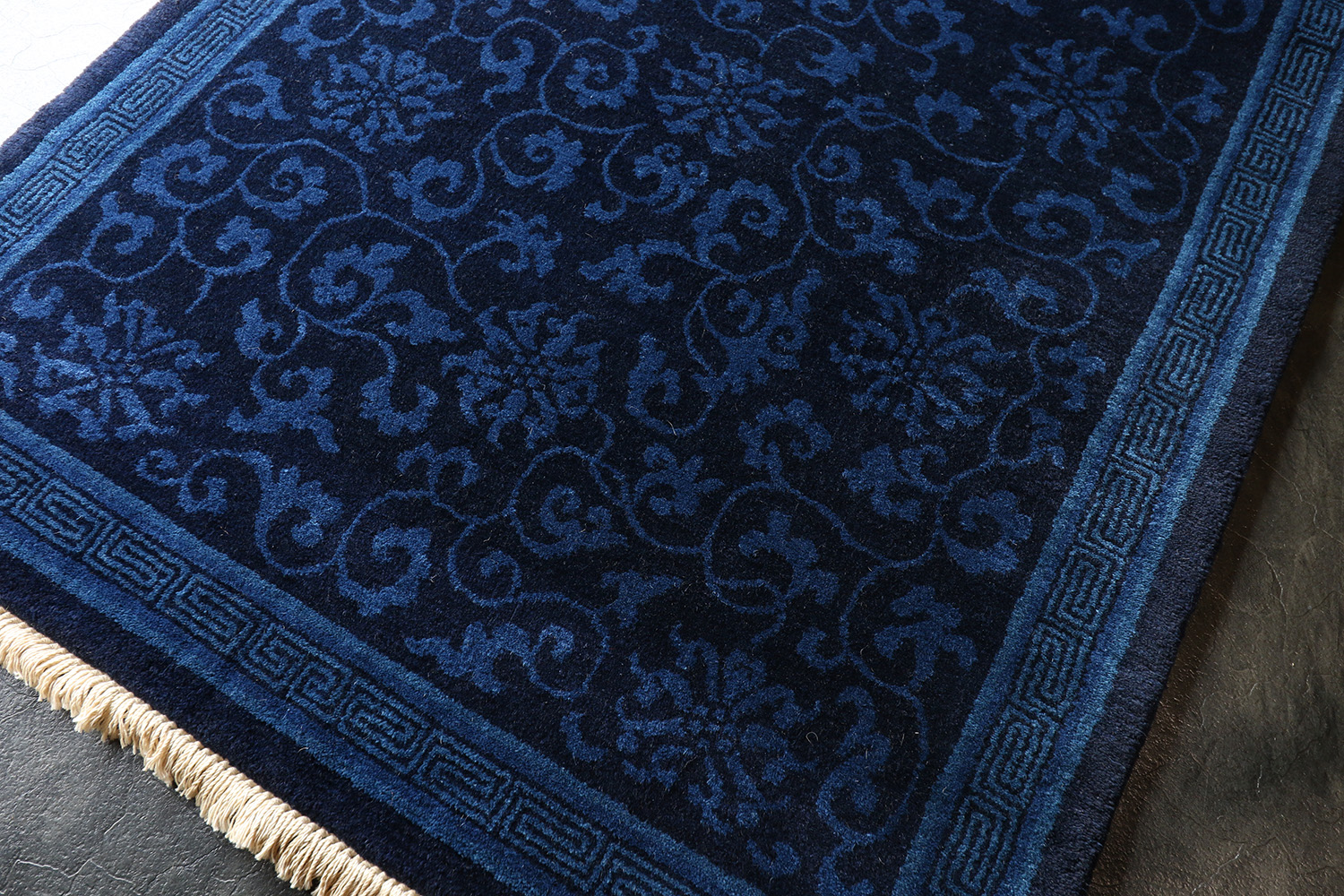 18世紀清朝雍正帝時代の唐草文様のテイストを生かした複雑で繊細なデザインは、華やかさとシックな落ち着きを持ち合わせたまたとない1枚です。