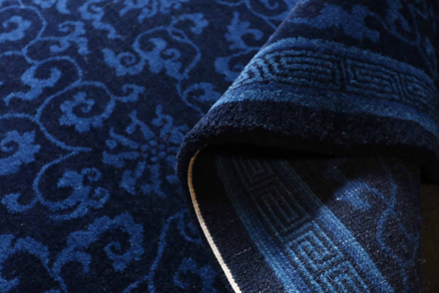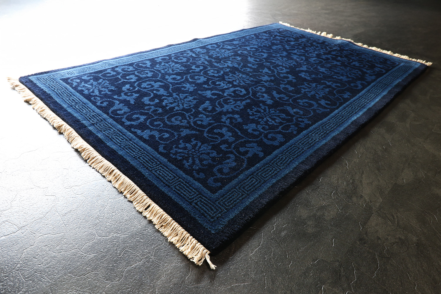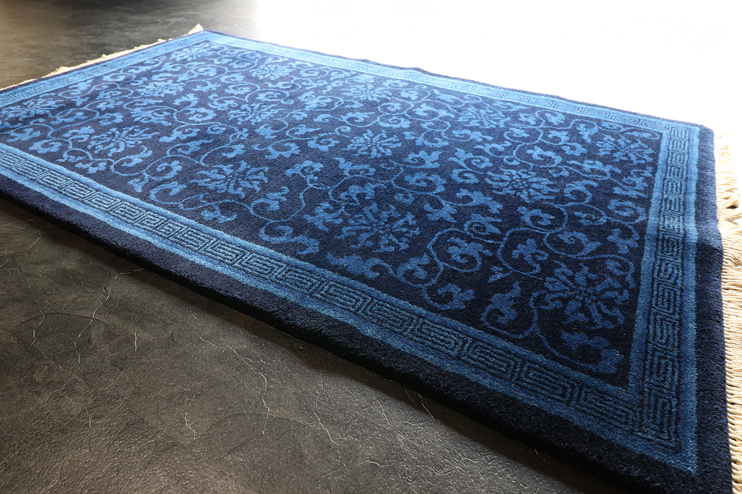 18世紀清朝雍正帝時代の唐草文様のテイストを生かした複雑で繊細なデザインは、華やかさとシックな落ち着きを持ち合わせたまたとない1枚です。